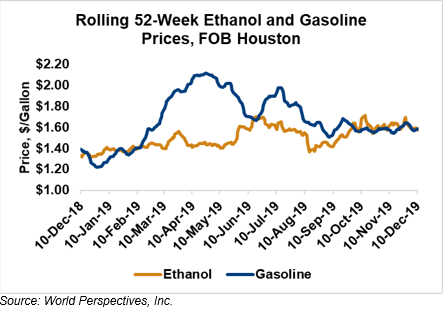 Market Outlook: U.S. ethanol prices ended last week 2.4 percent lower and have extended those losses in early week trading, down 2.7 percent through Tuesday’s close. Midwest wholesale rack ethanol prices were lower to end last week and are down 1.8 percent through Tuesday’s market close to their last quote of 46.08 cents/liter (163.09 cents/gallon).