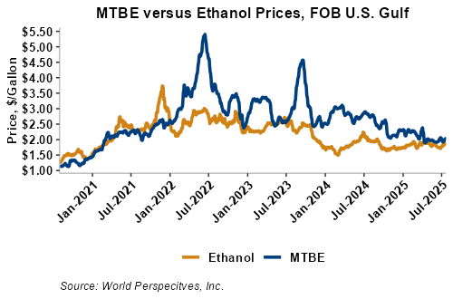 MTBE prices rose 1.7 percent last week and extended that rally in early week trading to gain 1.3 percent from Friday’s close through Tuesday’s trading. MTBE’s premium to FOB Houston ethanol has increased from last week’s report and stands at 3.97 cents/liter (15.04 cents/gallon).