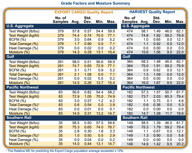 • U.S. Aggregate total damage was below the limits for each contract grade (1.6% for U.S. No 2 o/b and 1.9% on U.S. No. 3 o/b).