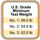 • Over 95% of all samples’ test weights were at or above the minimum for U.S. No. 1 grade, and 100% were above the limit for U.S. No. 2 grade.