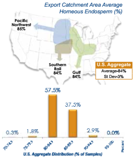 - Approximately 60% of Export Cargo Report samples had horneous endosperm less than 85%, indicating availability of corn with desirable softness for the wet millers and feeders.