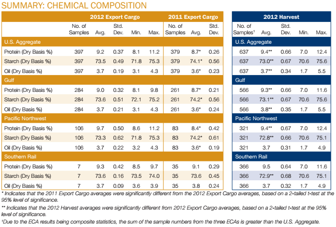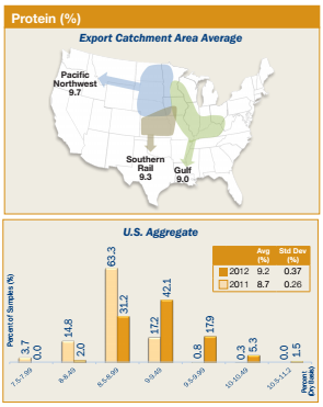 - U.S. Aggregate protein in 2012/13 was 9.2%, significantly higher than the 8.7% found in the 2011/12 samples.