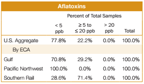 FGIS tested all 397 samples for the Export Cargo Report 2012/13 for aflatoxins. Results of the 2012/13 survey are as follows: