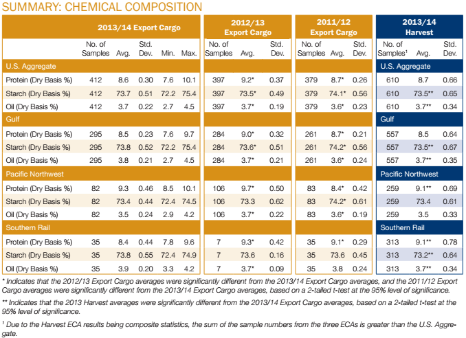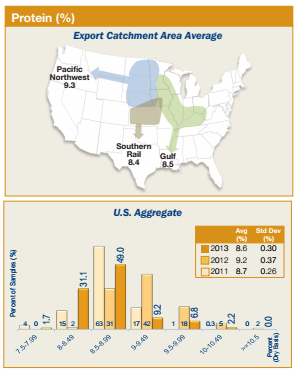 - U.S. Aggregate protein content was 8.6%, significantly lower than in 2012/13 (9.2%), but similar to 2011/12 (8.7%).
