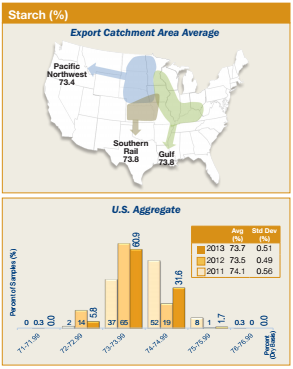 - U.S. Aggregate starch content was 73.7%, slightly higher than in 2012/13 (73.5%), but lower than in 2011/12 (74.1%).