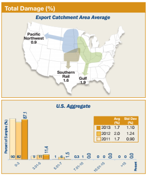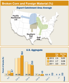 - U.S. Aggregate total damage (1.7%) was significantly lower than in 2012/13 (2.0%), well below the 3.0% limit for U.S. No. 1 corn.