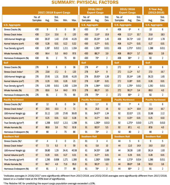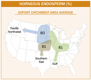 - Average U.S. Aggregate horneous endosperm (81%) was higher than 2016/2017 (79%), slightly higher than 2015/2016 (80%) and slightly lower than 5YA (82%).