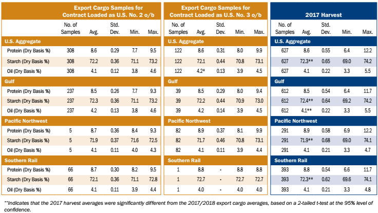 Corn Export Cargo Quality Report 2017/2018