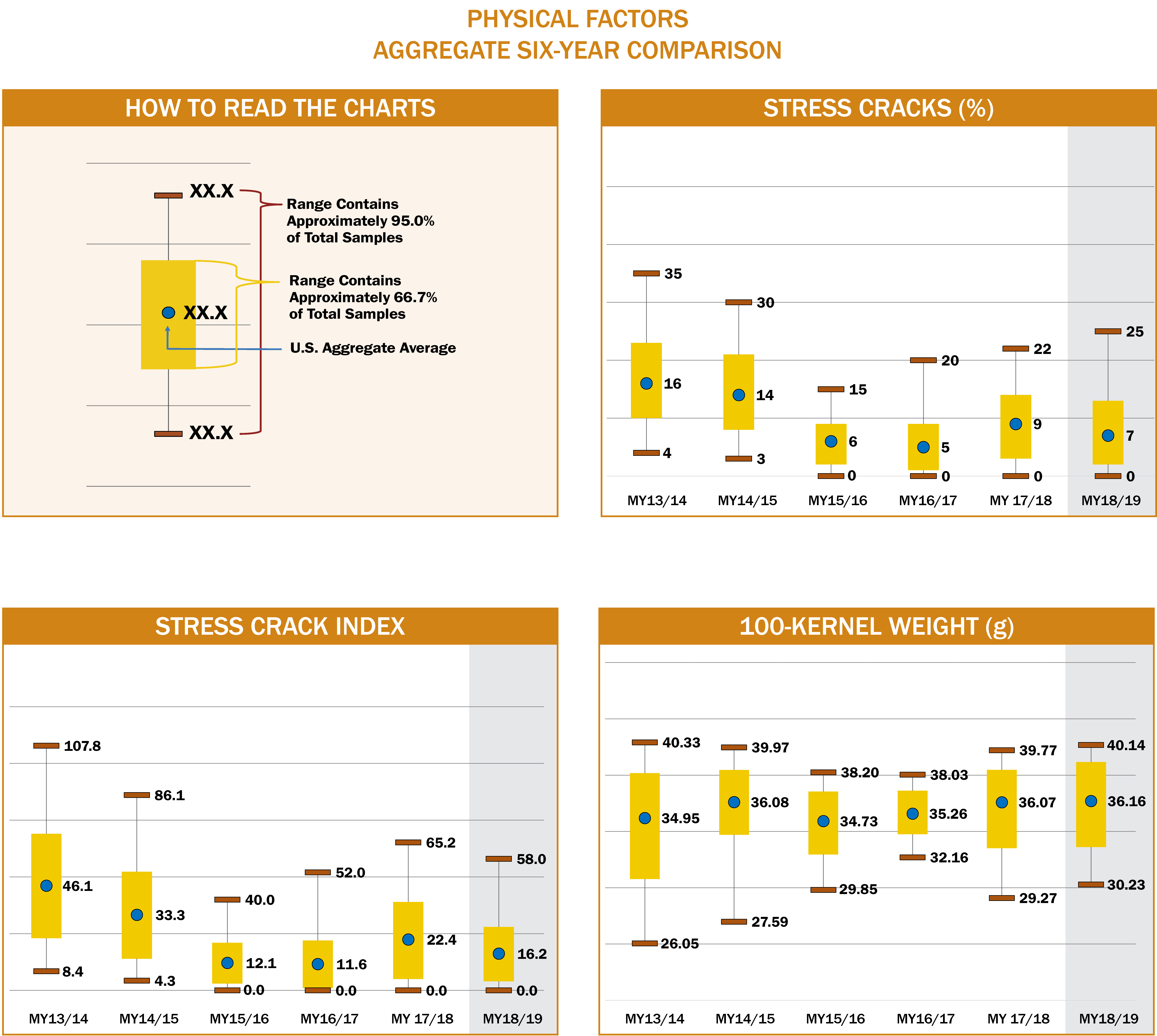 - Of the 2018/2019 export samples, 11.5% had 15% or higher stress cracks, compared with 16.0% in 2017/2018 and 5.6% in 2016/2017.
