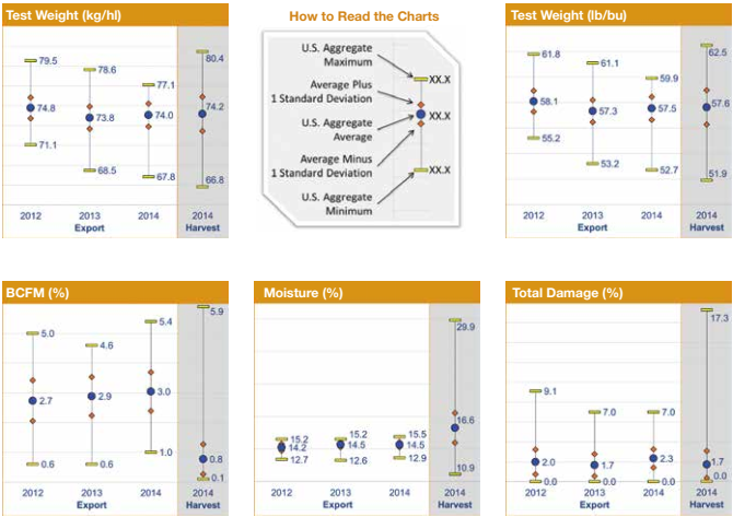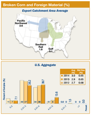 - Average U.S. Aggregate BCFM in export samples (3.0%) was at the maximum for U.S. No. 2 grade. It was higher than 2013/2014 (2.9%), 2012/2013 (2.7%), and 3YA (2.9%).