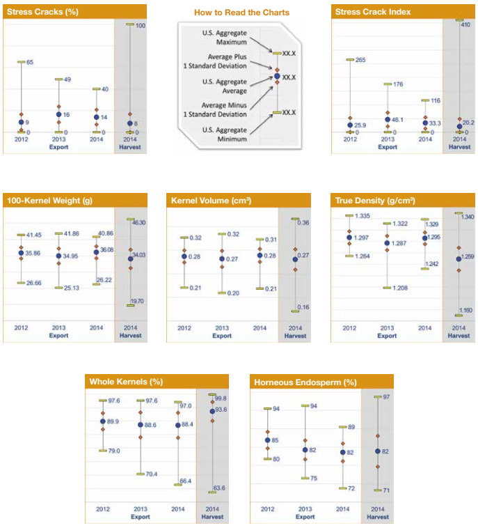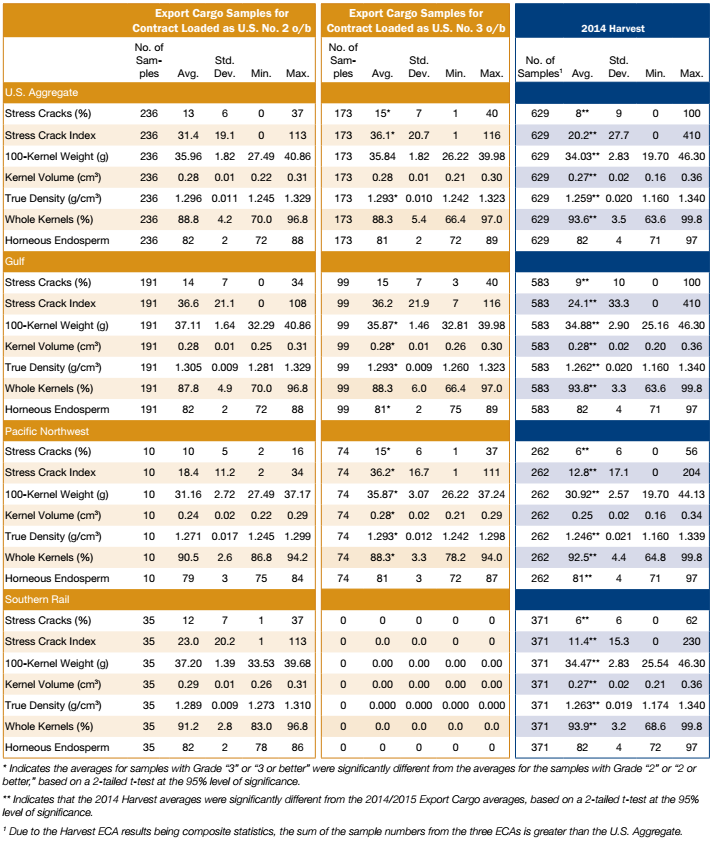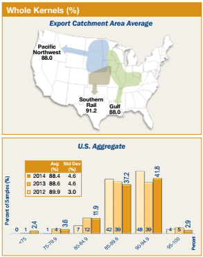 • Whole kernels at export (88.4%) was similar to 2013/2014 (88.6%) and 3YA (88.7%).