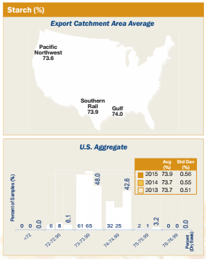 • Average U.S. Aggregate starch concentration (73.9%) was higher than 2014/2013 (73.7%) and 4YA (73.8%).