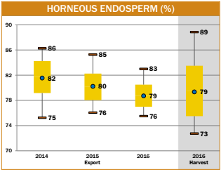 - Average horneous endosperm for 2016/2017, 2015/2016, 2014/2015, and export 5YA were within ±1% of the average horneous endosperm for 2016, 2015, 2014, and 5YA at harvest, respectively.