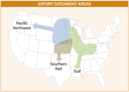 - Following the methodology developed for the previous five Export Cargo Reports, samples were proportionately stratified according to Export Catchment Areas (ECAs) – the Gulf, Pacific Northwest, and Southern Rail.