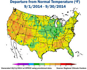 Typically, 80% of the U.S. corn crop is harvested by the end of October. However, in 2014, the cool summer temperatures initially delayed maturity. Harvest was further delayed by rainy weather and continued cool temperatures, primarily in the Gulf and Pacific Northwest ECAs, but also in the eastern half of the Southern Rail ECA. There was a scattered early freeze in mid-September in the northern Gulf and Pacific Northwest ECAs, affecting less than 3% of the corn crop. However, the crop experienced a more widespread freeze and snowfall in early October, this time affecting 20% of the corn production area. At that time, approximately 30% of the corn crop was not at full maturity and susceptible to frost damage, which could include reduced yields, lower test weights and stress-cracking, and may take a longer time to dry down. Producers also may artificially dry this grain. Alternatively, these plants may be harvested for silage, thereby removing the lesser-quality grain from the market stream.