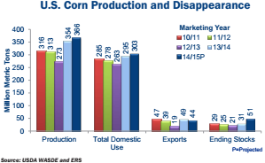 - Direct consumption of corn as a feed ingredient in domestic livestock and poultry rations rebounded in MY13/14 due to ample corn supplies and lower corn prices relative to other feed ingredients.
