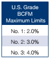 - U.S. Aggregate average BCFM in the 2014 crop (0.8%) was less than in 2013 (0.9%), and 3YA (0.9%), well below the maximum for No. 1 grade (2.0%).