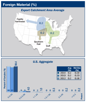 - Foreign material in the U.S. Aggregate samples averaged 0.2% in 2014, the same as in 2013 and 2012 and for 3YA.