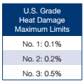 Heat damage is a subset of total damage and has separate allowances in the U.S. Grade standards. Heat damage can be caused by microbiological activity in warm, moist grain or by high heat applied during drying. Heat damage is seldom present in corn delivered at harvest directly from farms.