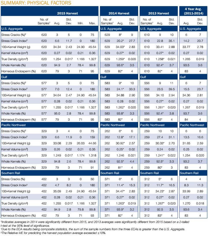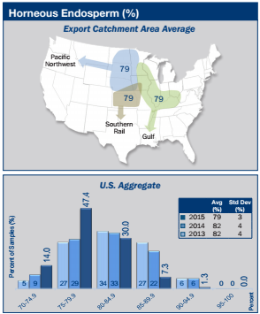 - Average U.S. Aggregate horneous endosperm (79%) in 2015 was lower than 2014 and 2013 (both 82%), and 4YA (83%).