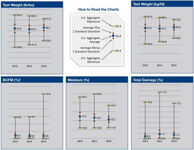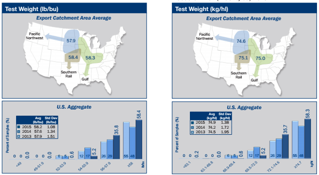 - Average U.S. Aggregate test weight in 2015 was well above the minimum for U.S. No. 1 grade (56 lb/bu).