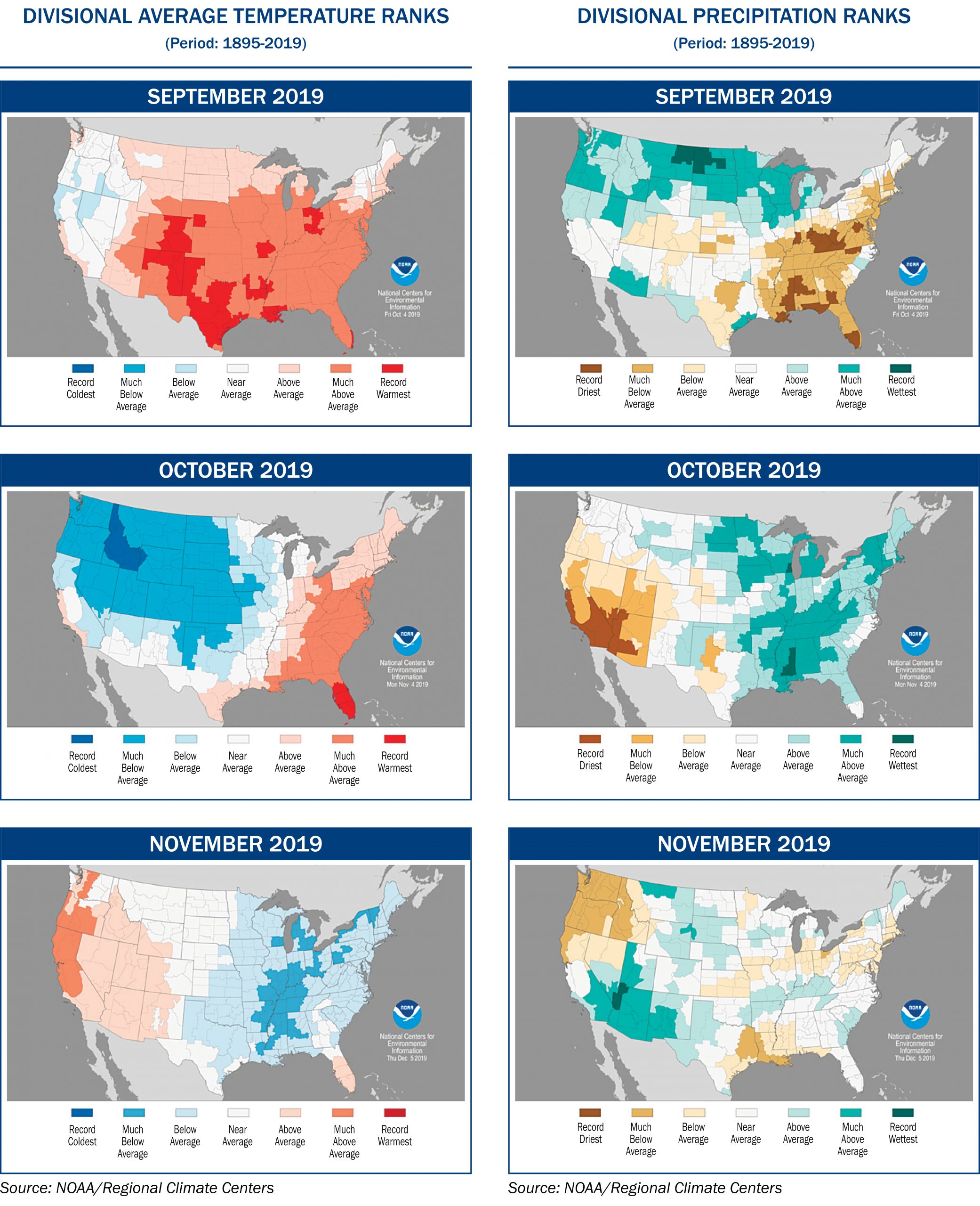 Additionally, aflatoxin production by the Aspergillus family of molds is favored by hot temperatures, low precipitation and drought conditions followed by periods of high humidity. While it was hot throughout the corn-growing region during late grain-fill, most of the 2019 crop had ample water supply. Therefore, based on weather, aflatoxin should not be a problem this year.