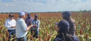 Feed grain importers from Kenya and Spain are pictured here with Kent Winters, a sorghum producer in Andale, Kansas. The group’s goal was to increase its awareness of U.S. corn, co-product and sorghum production, origination and transportation through U.S. export channels.