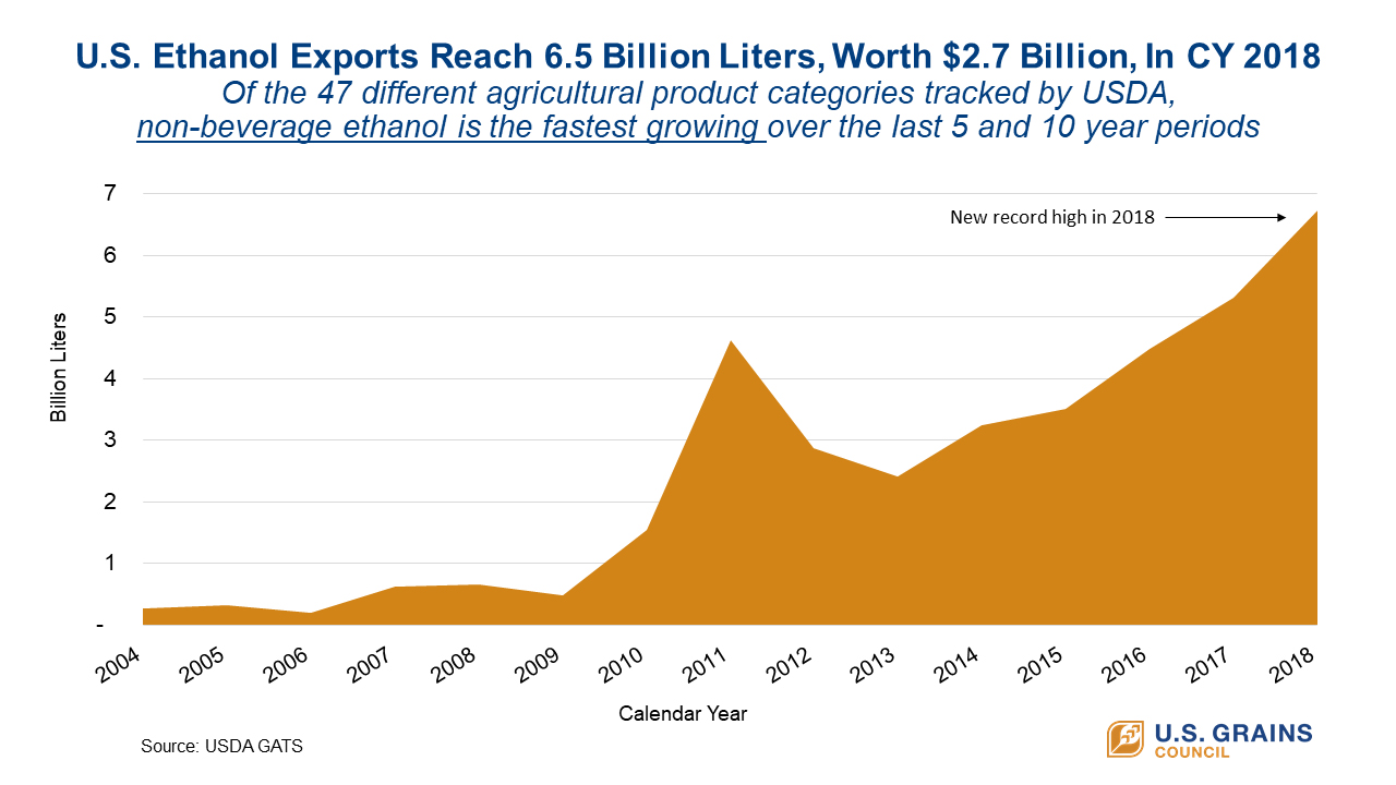 A recent analysis by the U.S. Grains Council (USGC) shows non-beverage ethanol has been the fastest growing U.S. agricultural export over the past decade by a significant margin.