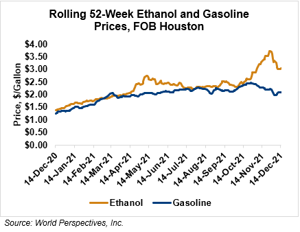 FOB Houston ethanol prices finished last week 3.5 percent lower but have fully reversed those losses in early week trading, rising 3.5 percent through Tuesday’s trading from Friday’s close. FOB Houston ethanol prices are quoted at 79.68 cents/liter (301.61 cents/gallon). FOB Santos, Brazil anhydrous ethanol prices were lower last week; they are down in early week trading, falling 0.8 percent to 71.01 cents/liter (268.8 cents/gallon) through Tuesday’s trading.