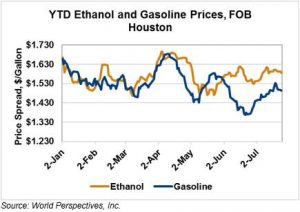 Market outlook: U.S. ethanol prices are softer this week with CBOT ethanol futures down 2.5 cents from last week and FOB Gulf prices off 1.1 cents. Last week, the U.S. EIA reported that ethanol stocks did not change substantially from the prior week, breaking a four-week trend of dwindling stocks. Notably, most of the stocks increase came from the Gulf Coast region where stocks rose 14% to 4.175 million barrels. The larger stocks figure pressured the ethanol market late last week and early this week.