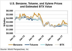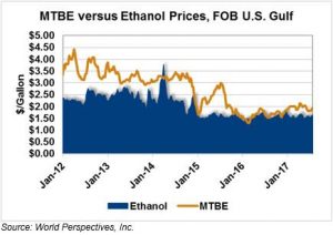 Lower gasoline prices are also partly responsible for lower ethanol prices this week. Offers for 83.7 octane RBOB FOB Houston fell 2.5 cents to $1.522/gallon ($0.402/liter) and prices for 87 octane RBOB waterborne U.S. Gulf fell 2.2 cents to $1.457/gallon ($0.3848/liter). RBOB futures were lower late last week but rebounded early this week. MTBE prices are higher than one week ago, quoted at $1.9848/gallon ($0.5415/liter).