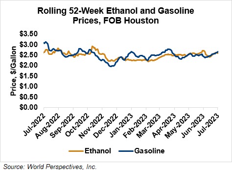 Market Outlook: U.S. ethanol prices ended last week 1.6 percent lower and were weaker still in early week trading and fell 0.4 percent through Tuesday’s close. Midwest wholesale rack ethanol prices were lower to end last week and were down 0.3 percent through Tuesday’s market close to their last quote of 70.07 cents/liter (265.26 cents/gallon).