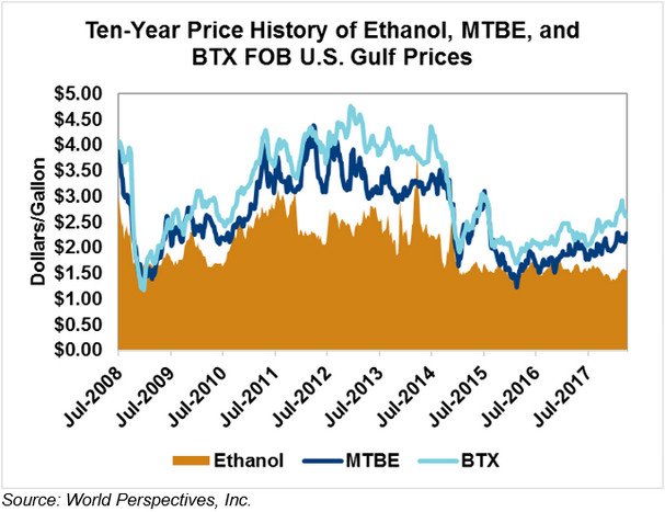 MTBE prices were up slightly last week (up 0.8 percent by Friday), ending a four-week downturn. MTBE FOB U.S. Gulf prices are 2.7 percent higher through Tuesday’s trading and are at a 22.359 cents/liter (84.64 cents/gallon) premium to FOB Houston ethanol.