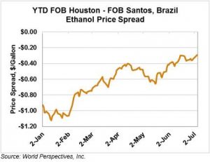 Brazil’s ethanol production will likely continue its strong pace into July. On Monday, Brazil’s Petrobras announced price increases for gasoline and diesel, which will be supportive for ethanol production. However, Brazilian ethanol prices may not have hit their seasonal lows yet and Brazil’s political and currency situations leave additional downside price risk.