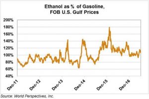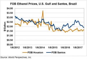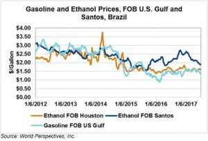 Looking forward, ethanol prices should continue to find support in the U.S. and pressure in Brazil. U.S. ethanol production margins have come under pressure from rising corn prices, which should limit supply growth. Additionally, U.S. gasoline prices have been moving higher which will be supportive as well. Brazil’s political instability remains a risk and the country’s production growth should pressure prices. U.S. ethanol looks to remain competitive against Brazil for the near future.