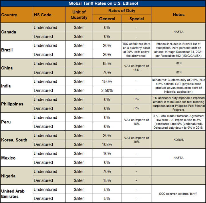 Home | BUYING & SELLING | Ethanol Reports Ethanol Market and Pricing Data – March 12, 2019 Contents Ethanol, Fuels and Co-Product Pricing Tariff Rates Additional Market Resources Tariff Rates Tariff Rate Database: If you are interested in tariff rate data for all U.S. export markets, please click here.