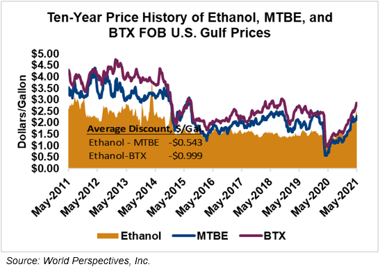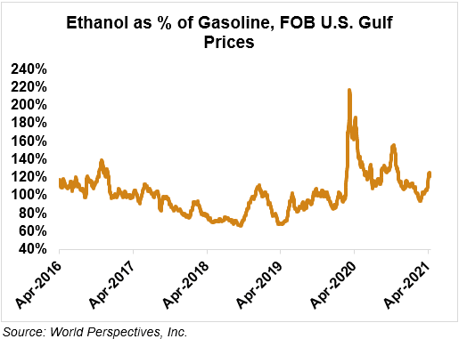 Market Outlook: U.S. ethanol prices ended last week 2.5 percent lower but are erasing those losses in early week trading, up 5.2 percent through Tuesday’s close. Midwest wholesale rack ethanol prices were higher to end last week and are up 1.6 percent through Tuesday’s market close to their last quote of 65.55 cents/liter (248.14 cents/gallon).