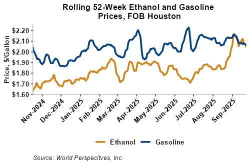 Market Outlook: U.S. ethanol prices ended last week 8.6 percent lower and continued that decline in early week trading and fell 2.2 percent through Tuesday’s close. Midwest wholesale rack ethanol prices were lower to end last week and were down 0.3 percent through Tuesday’s market close to their last quote of 53.25 cents/liter (201.57 cents/gallon).