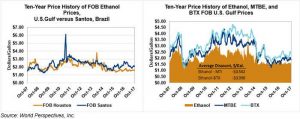 MTBE is lower for the third consecutive week while BTX component prices are lower as well. MTBE prices are approaching six-month lows (set 11 July 2017 at $1.748/gallon, 47 cents/liter) and are currently priced at $1.863/gallon (48.5 cents/liter). BTX prices fell 8.5 cents/gallon (2.2 cents/liter) this week and the weighted average component value hit $2.315/gallon (61.2 cents/liter).