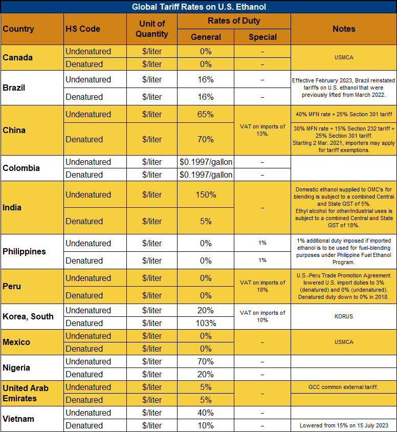Home | BUYING & SELLING | Ethanol Reports Ethanol Market and Pricing Data – September 13, 2023 Contents Ethanol, Fuels and Co-Product Pricing Tariff Rates Additional Market Resources Download report Tariff Rates Tariff Rate Database: If you are interested in tariff rate data for all U.S. export markets, please click here.