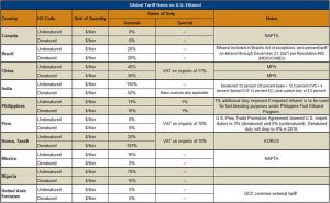 Home | BUYING & SELLING | Ethanol Reports Ethanol Market and Pricing Data – September 19, 2017 Contents Ethanol, Fuels and Co-Product Pricing Tariff Rates Additional Market Resources 2. Tariff Rates Tariff Rate Database: If you are interested in tariff rate data for all U.S. export markets, please click here.