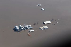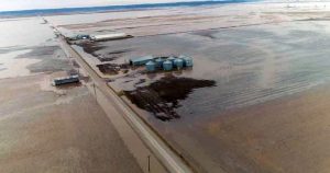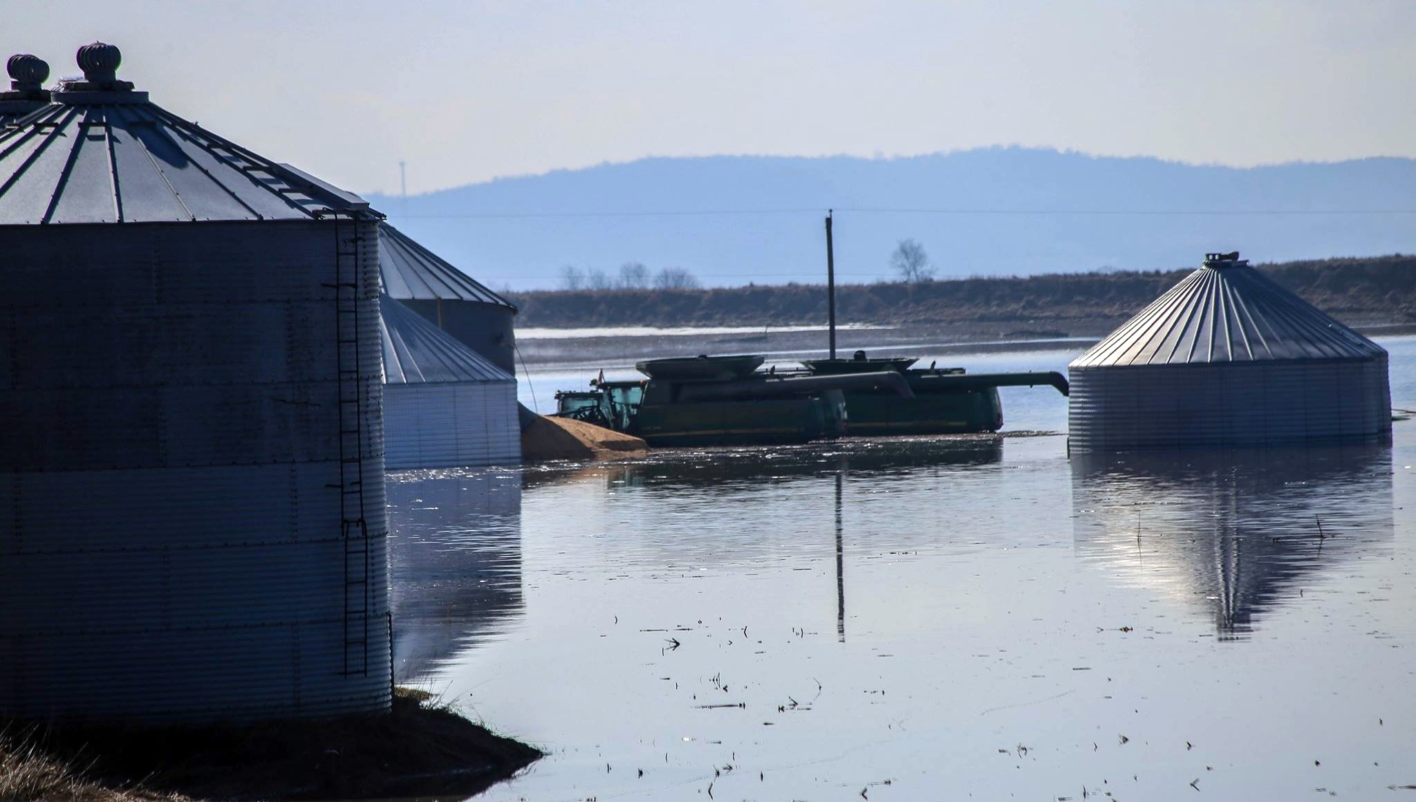 Roads also remain underwater – inhibiting travel and causing concern for conditions when heavy grain trucks start to deliver grain again. Aistrope was forced to travel more than 30 miles to reach a flooded field located only five miles from his home as the roads in between were underwater.