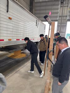 Continuing the journey of U.S. corn after harvest, we visited a nearby shuttle facility to observe the high standards of grain quality testing followed at every point along the value chain. We were lucky enough to see a few trucks pass through during our visit, allowing us to witness weighing and testing procedures and watch how corn is deposited into storage!