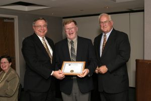 Broten was nominated for the award by nine of his colleagues, including former USGC President and CEO Tom Sleight (right) shown here speaking with Broten at the Council’s 59th Annual Board of Delegates Meeting in 2019. The number of nominators is a testament to the widespread impact of his work with the Council that continues to be felt today.
