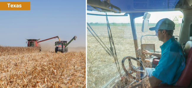 Pictured, Texas Corn Producers Association member Colin Chopelas harvests his crop right outside of the Corpus Christi area.