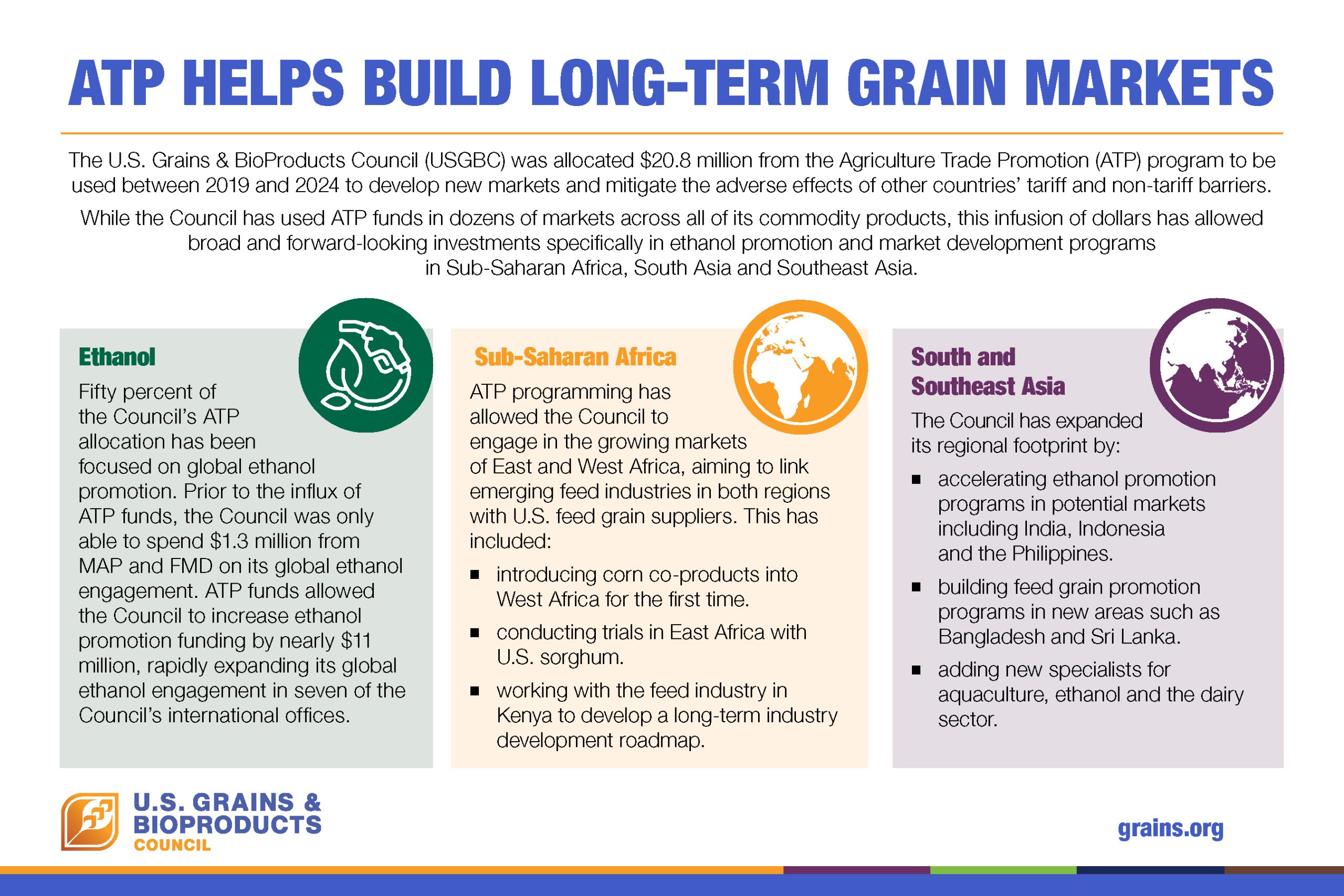 ATP Helps Build Long-Term Grain Markets Download Image USGBC ATPFunds 9x6 02 07 30 25 FINAL Download Infographic Post navigation Previous PostPrevious Promoting Ethanol Around the WorldNext PostNext Comparing Market Development Programs