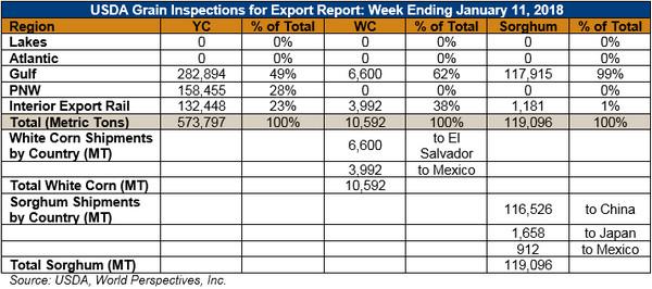 Note: Due to the Monday, January 15 holiday, weekly U.S. export sales will be published on Friday, January 19. Updated U.S. export sales will be next published in the January 25, 2018 edition of Market Perspectives.