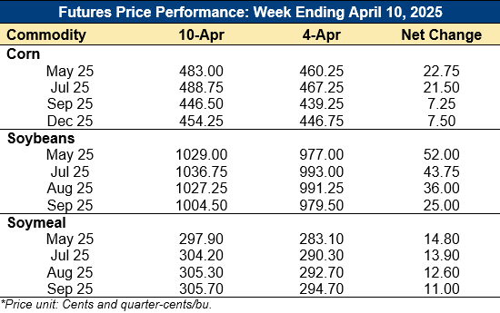 Home | MARKETS, TOOLS & DATA / REPORTS | Market Perspectives Market Perspectives – April 10, 2025 Contents CBOT Corn Futures Prices FOB Prices Distiller’s Dried Grains with Solubles (DDGS) Pricing Ocean Freight Markets and Spreads Download report CBOT Corn Futures Prices Daily Price Evolution: Weekly Price Performance: