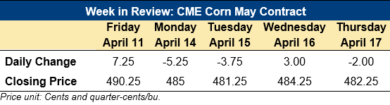 Home | MARKETS, TOOLS & DATA / REPORTS | Market Perspectives Market Perspectives – April 17, 2025 Contents CBOT Corn Futures Prices FOB Prices Distiller’s Dried Grains with Solubles (DDGS) Pricing Ocean Freight Markets and Spreads Download report CBOT Corn Futures Prices Daily Price Evolution: Weekly Price Performance: