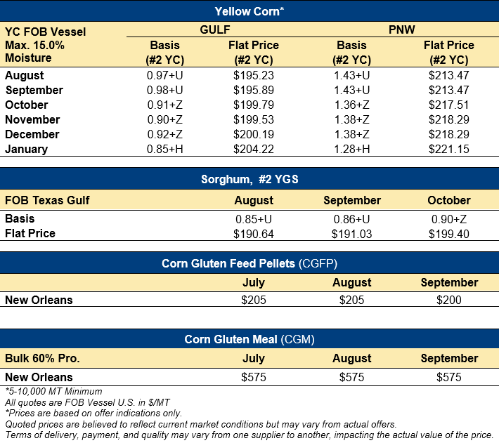 Home | MARKETS, TOOLS & DATA / REPORTS | Market Perspectives Market Perspectives – July 10, 2025 Contents CBOT Corn Futures Prices FOB Prices Distiller’s Dried Grains with Solubles (DDGS) Pricing Ocean Freight Markets and Spreads Download report FOB Prices